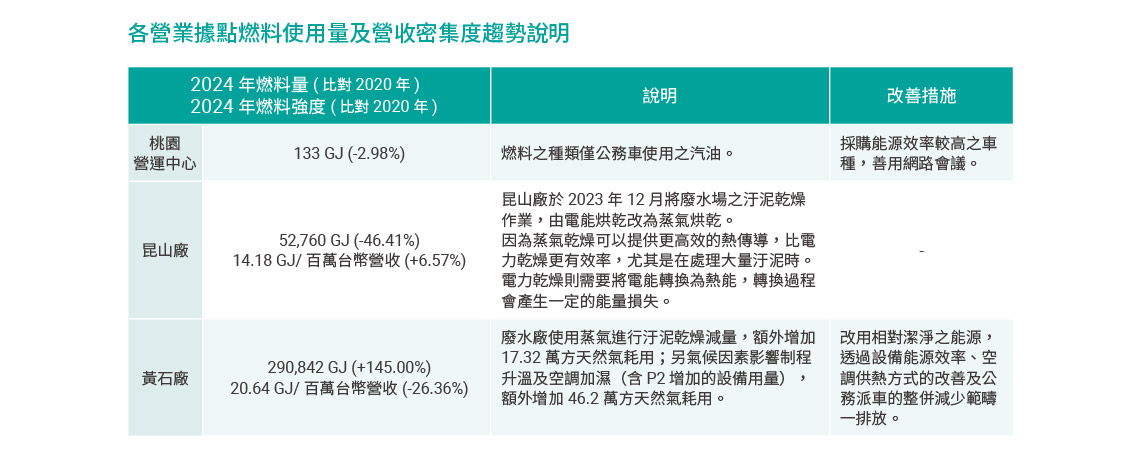 2024 年黃石 P2 工廠擴建完成開始量產及年末的泰國廠試產,均推升了集團總用電量,在集團電力密集度的指標部分,也因二個廠仍在製程調整階段,而影響整體能源效率。