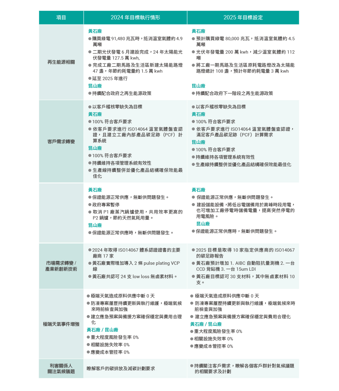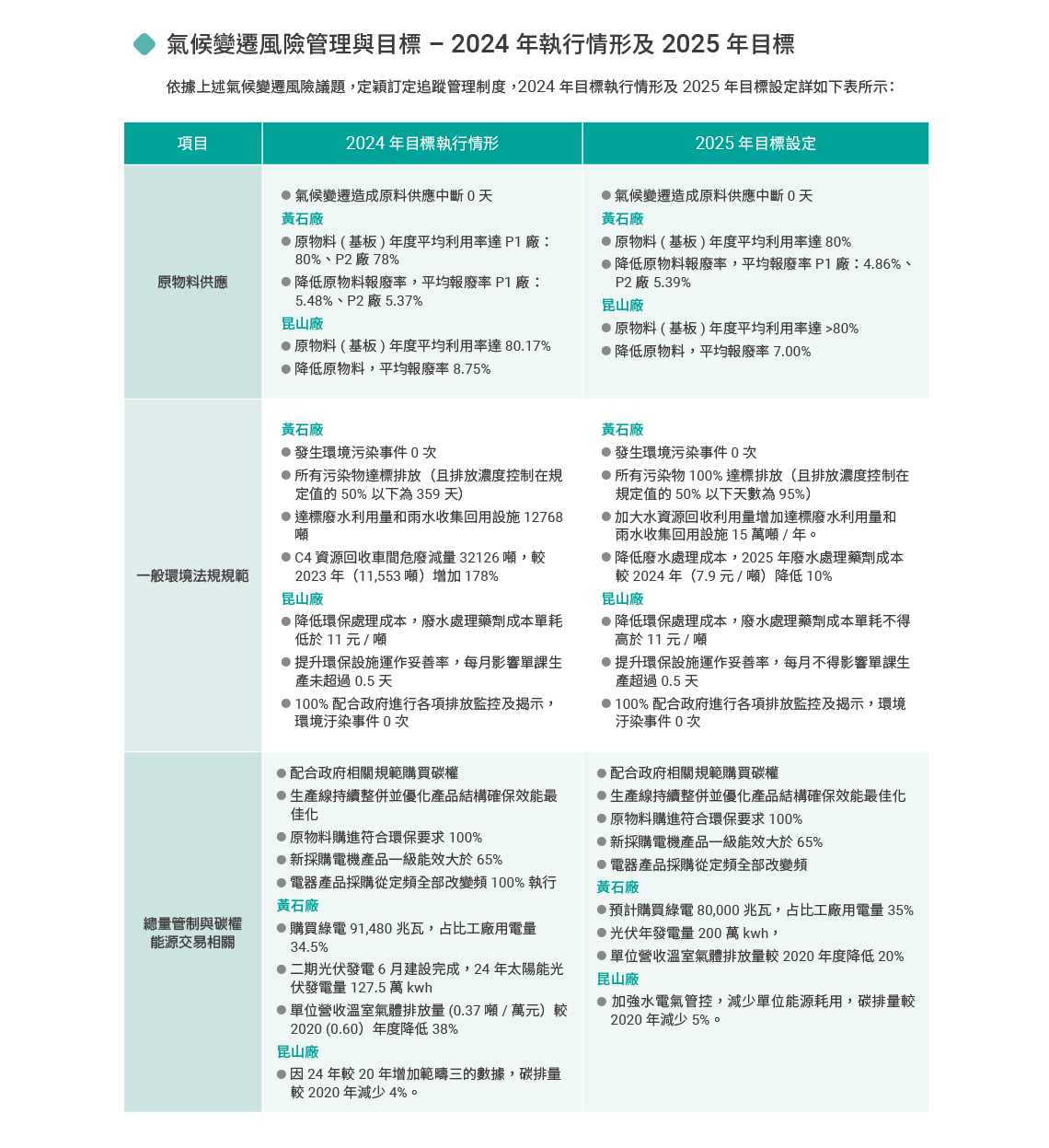 氣候變遷風險管理與目標 – 2024 年執行情形及 2025 年目標