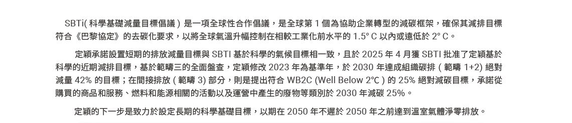● 已向SBTi提出具體的科學減碳目標,預計於2025年1月通過審核。