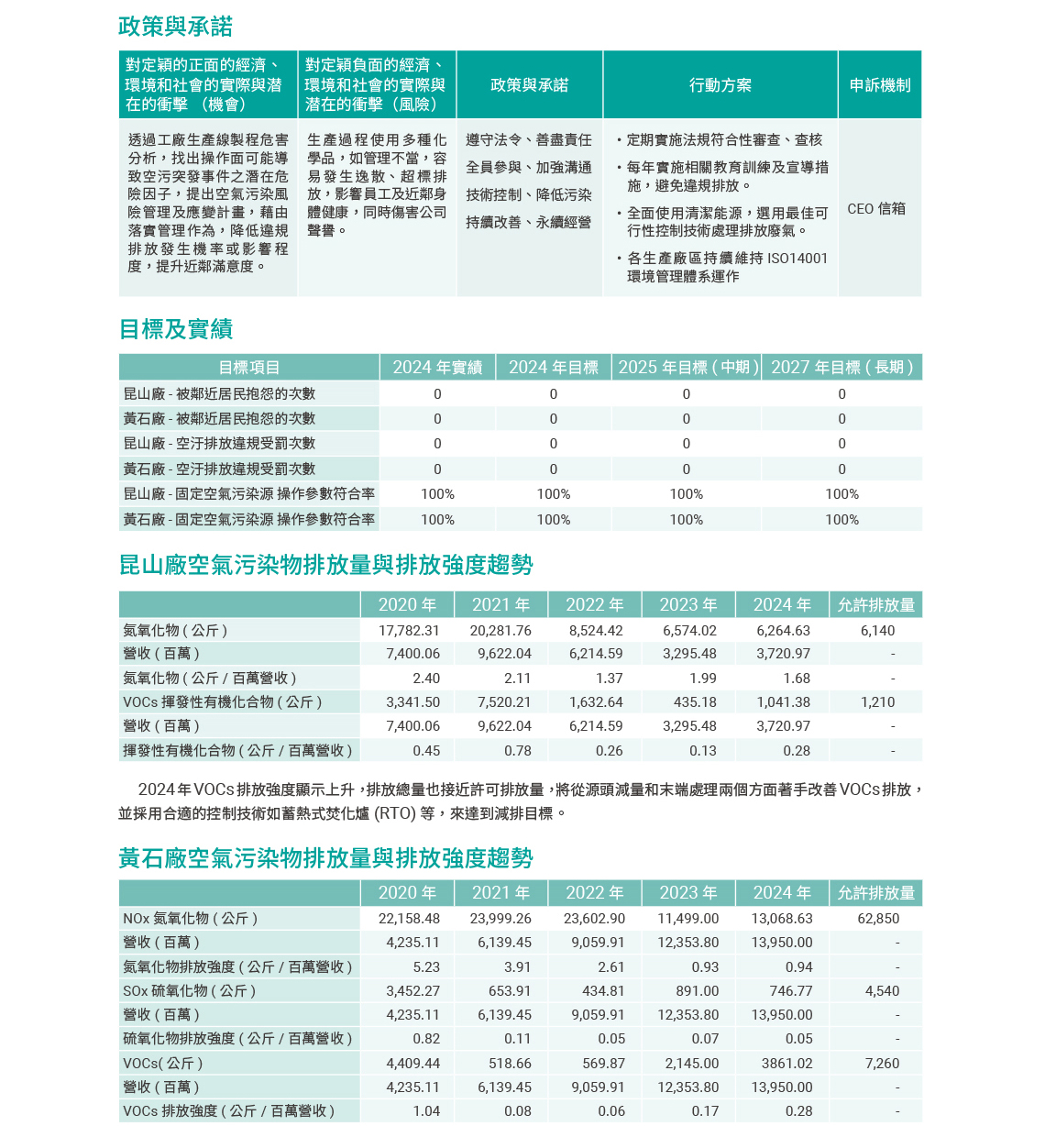 2024 年昆山及黃石二個廠區,汙水處理狀況均相當良好,各項指標均呈現下降且符合法規要求,爲因應未來環保法令逐步加嚴,兩廠除透過研發單位致力於源頭之污染减量,也將持續投入資源改善廢水處理設施效能。