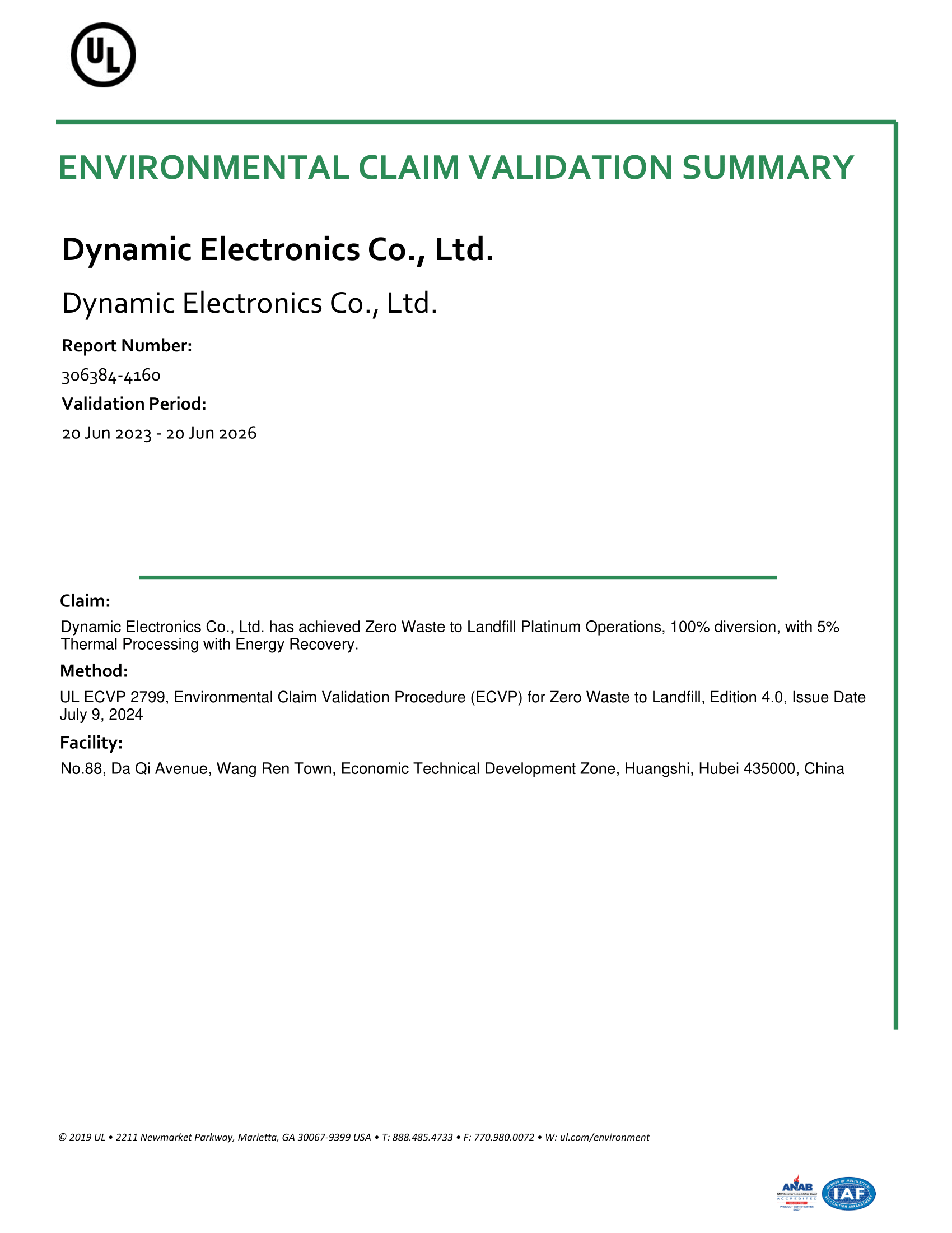 超穎:UL2799 廢棄物零填埋認證